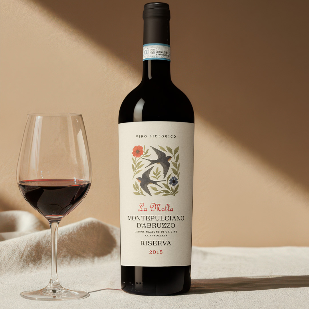 Från och med december finns La Molla Montepulciano d’Abruzzo Riserva 2018 på Systembolagets hyllor. Vinet är delvis lagrat på fat, har nyanserade, balanserade toner och montepulcianodruvans karaktäristiskt mörkfruktiga karaktär som har fått utvecklas med värdighet med några års lagring. Passar perfekt till eleganta kötträtter av nöt och lamm, smakrika pastarätter och utvalda lagrade ostar.